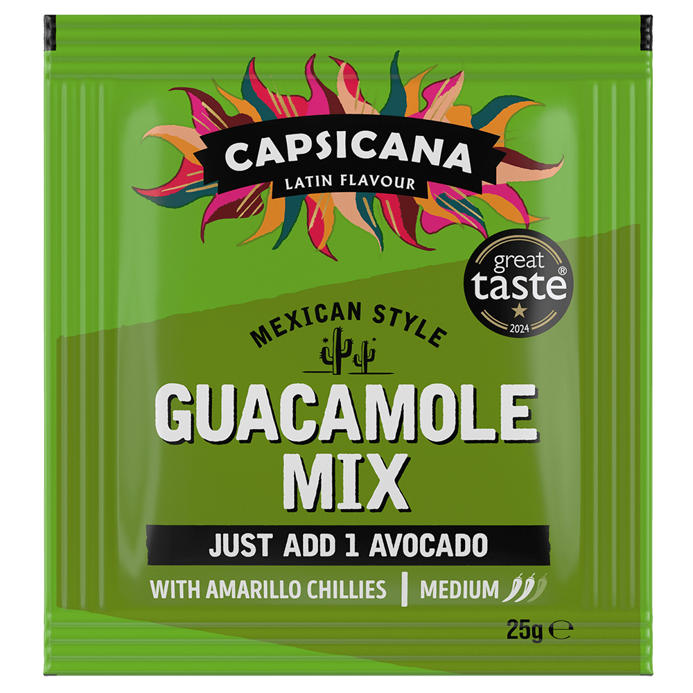 Flavoursome Manzano chillies give our Guacamole mix an extra kick! Just mix a sachet into one smashed avocado for instant, deliciously fresh Guacamole.
