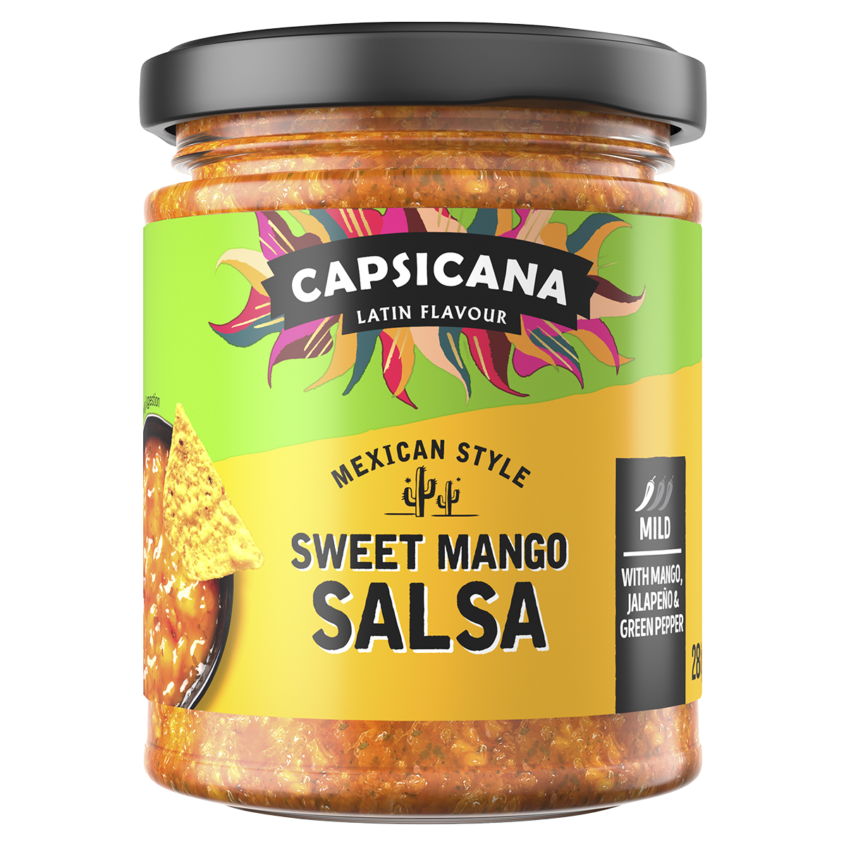 Our NEW Mexican Style Sweet Mango Salsa is packed full of flavour with a blend of mango, jalapeño and green peppers. The perfect balance of mild and sweet and even a little fruity kick! It's great as a dip for chips or as a topping for fajitas and tacos.