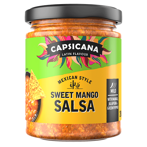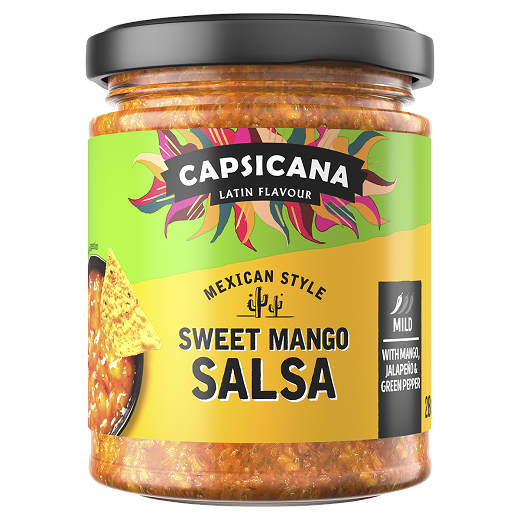Our NEW Mexican Style Sweet Mango Salsa is packed full of flavour with a blend of mango, jalapeño and green peppers. The perfect balance of mild and sweet and even a little fruity kick! It's great as a dip for chips or as a topping for fajitas and tacos.