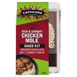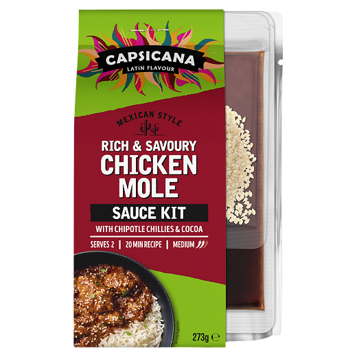 Introducing a real staple in Mexican cuisine… the mighty Mole (pronounced Moh-lay). Served at all of the important occasions in Mexican culture, the dark and velvety dish takes you on a culinary adventure with its rich and complex layers of flavour. This sauce kit combines chipotle chillies, tomatoes, ground peanuts and a hint of cocoa to deliver those aromatic and savoury flavours. Enjoy in 3 easy steps!