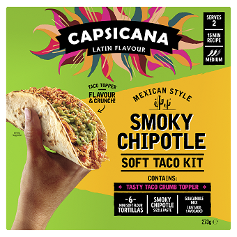 This ultimate taco recipe is inspired by the classic Chicken Tinga, a traditional Mexican dish featuring shredded chicken in a rich tomato and chipotle chilli sauce. Typically served on tortillas and loaded with avocado, the dish brings a delightful blend of sweet and smoky flavours to your table. This kit includes a smoky chipotle sizzle paste to cook your chicken, a guacamole mix to make your avocado topping even more delicious, and a tasty taco crumb topper to add extra flavour and a satisfying crunch.